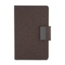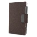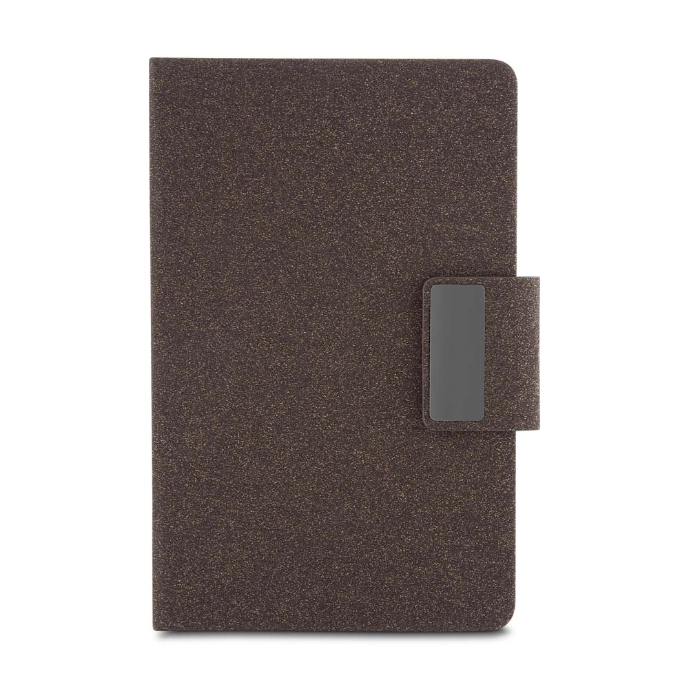 Caderno de anotações com capa em PU e fibra de chá ou café, 80 folhas 70 g/m², engate para caneta com fechamento magnético e placa de metal,não acompanha caneta