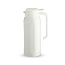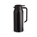 Garrafa térmica com capacidade de 1,4 litros, fabricada em aço inoxidável, possui parede dupla e tampa com alavanca de acionamento. Com tampa, alça e base plásticas, a garrafa possui um design com ondulações em relevo e acabamento brilhante.